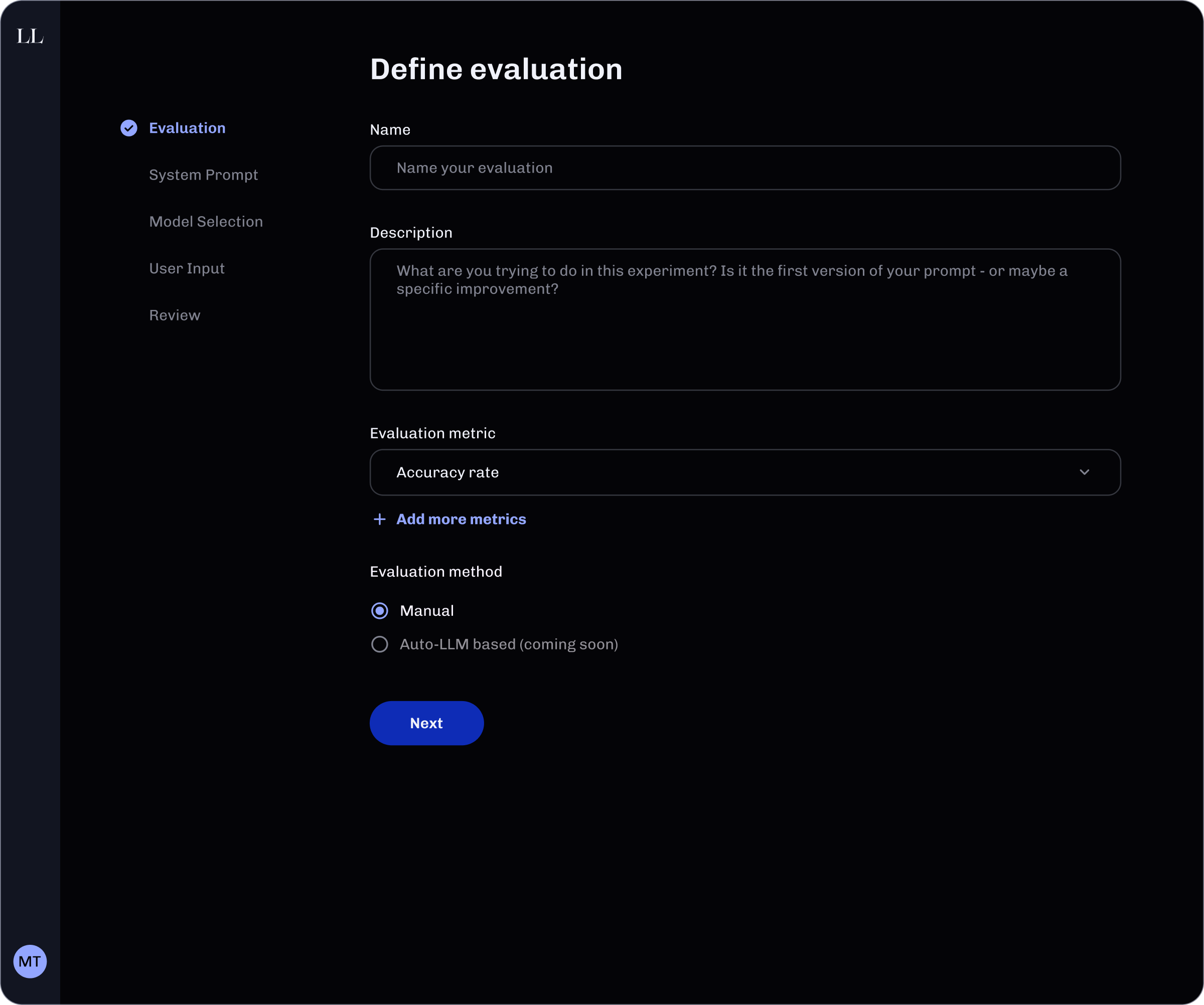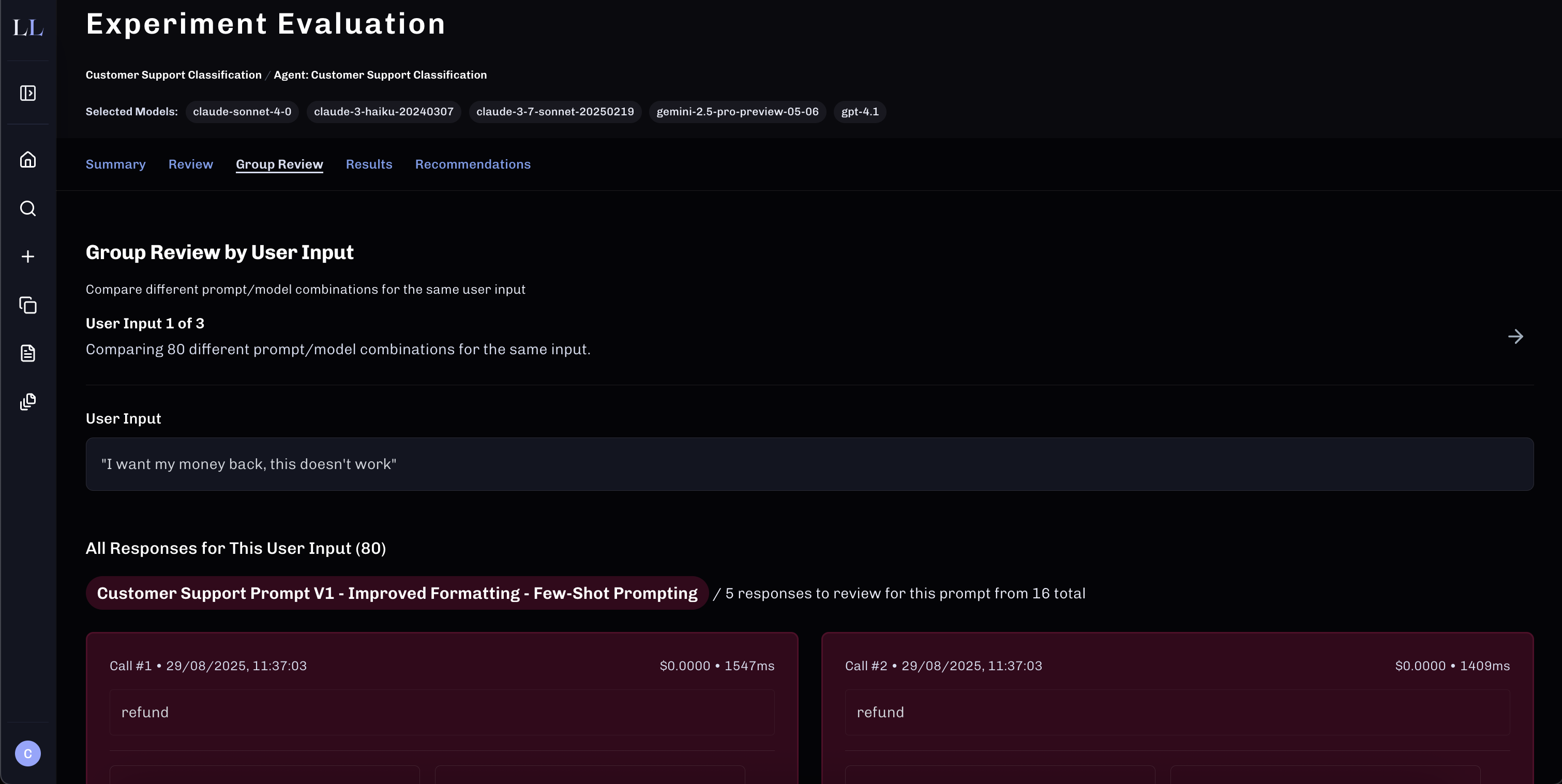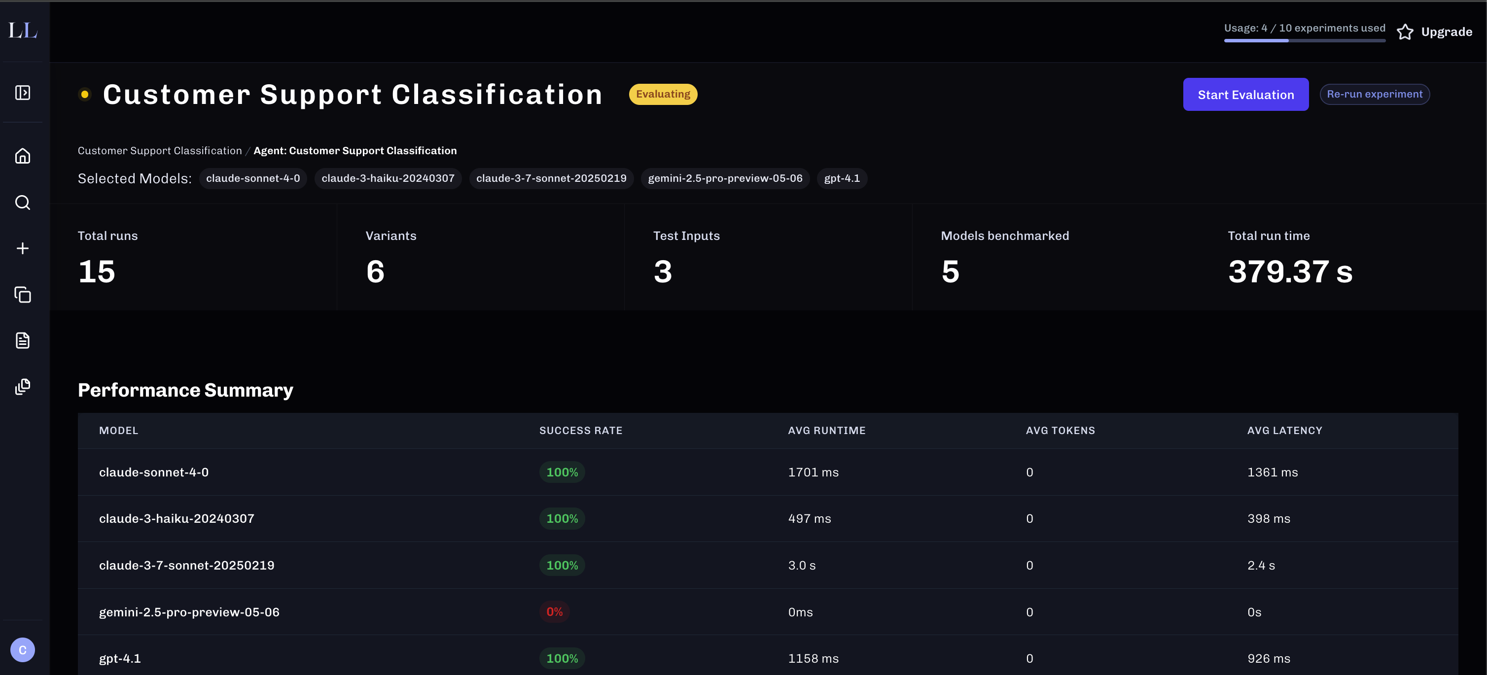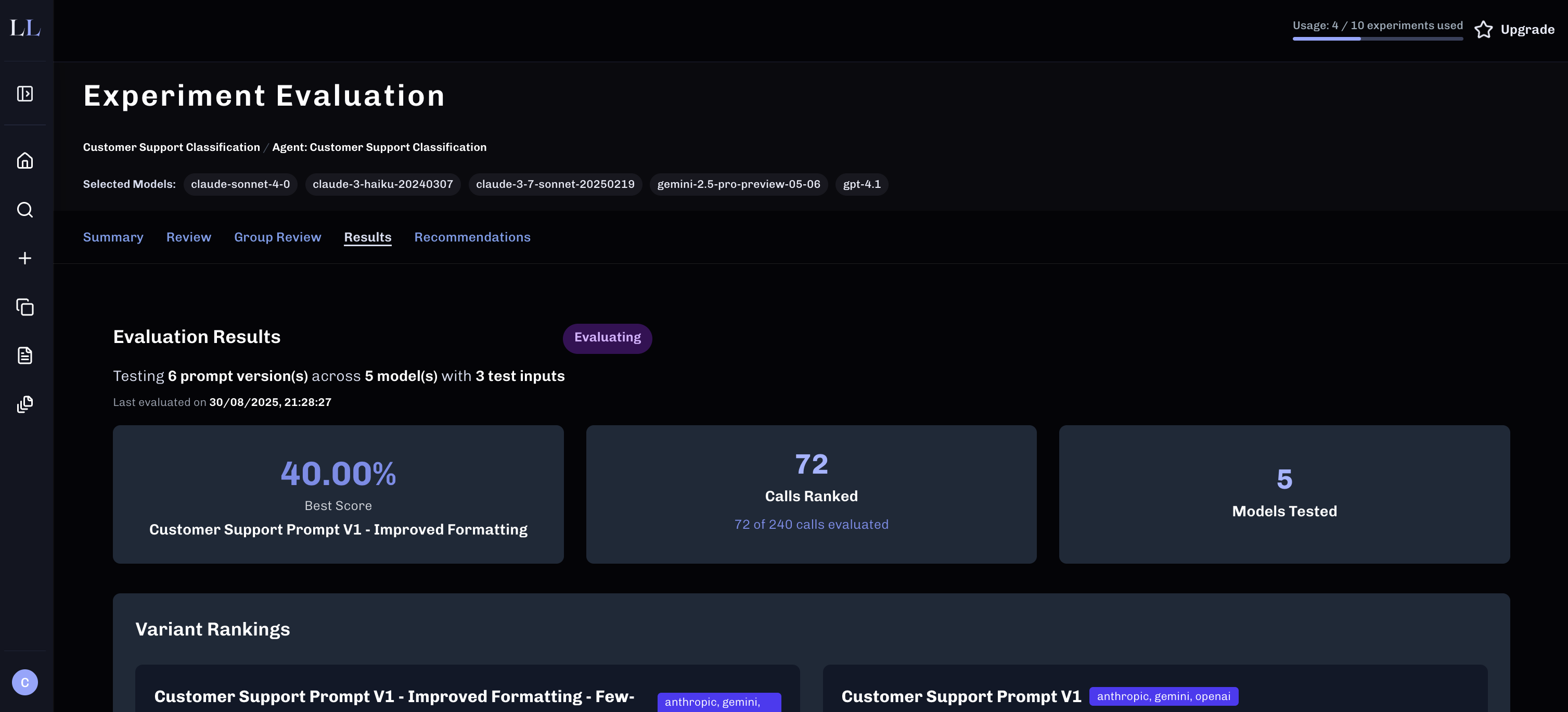 The first collaboration workspace where PMs, domain experts, and engineers can design prompts, run experiments across LLMs, evaluate results, and deploy to production — all without code.